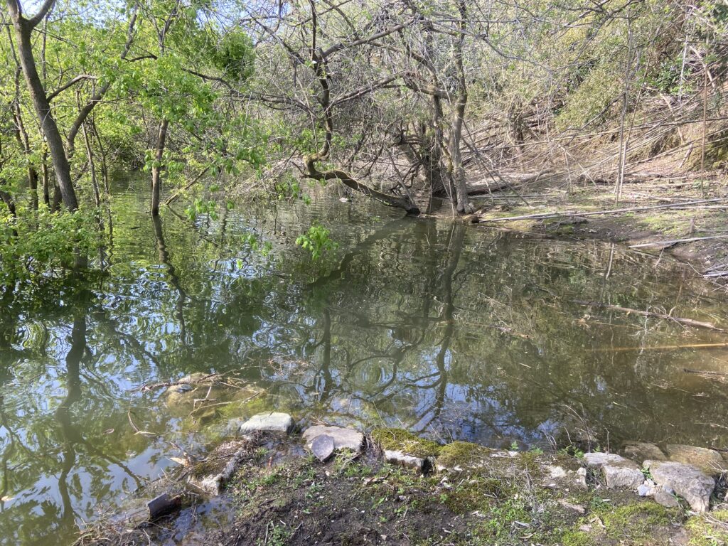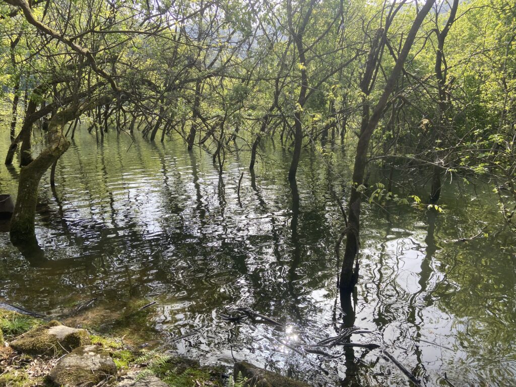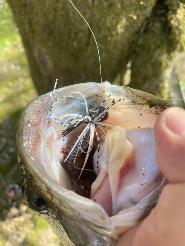 唯一上流だけは足場もよく巻きもカバー撃ちも可能でした。ワカサギレイクみたいに早春のタイミングでBW爆発!的なフィールドであれば自信を持って上流に居座ることも可能です。しかし、事前情報もない初フィールドです。この早春のタイミングで上流勝負はリスクあると感じ、早々と上流を見切ることに。