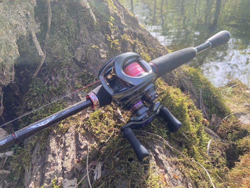 カラーラインを嫌い人が多いですが、個人的にはカラーラインが好みです。クリアライン+ピンクラインでおおよそ1mほどなので、吊るしの釣りでのレンジ調整や沖のブレイクでのフォール。ちょっとしたラインの変化が見た目ですぐに分かるので情報量はクリアラインと比べて多いです。あとは強風でも瞬時にラインメンディングができるのでこのラインは重宝してます。