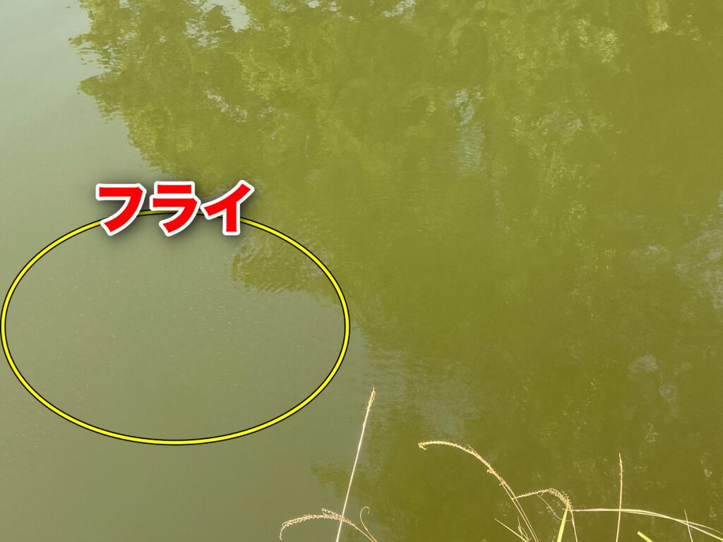 予想を裏切るよう季節は進んでおり、ほとんどのエリアで「フライ」を確認できた。様々なルアーとリグを要所で投入してきましたが、池の状況を加味しアフター狙いにシフト。