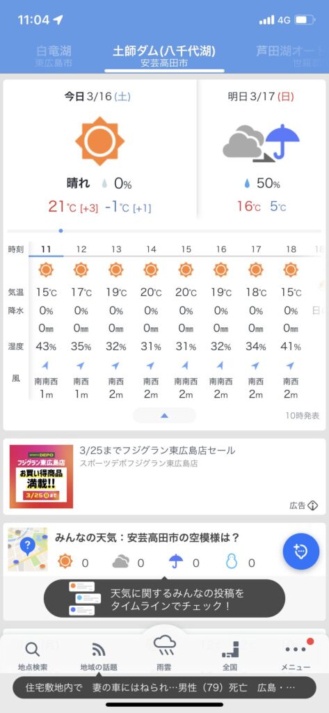 昨日、友人から釣りのお誘いがあったので、お昼前から土師ダムへ。先週のぽかぽか陽気から一転、今週は冬逆戻りか!というような天気の連続。