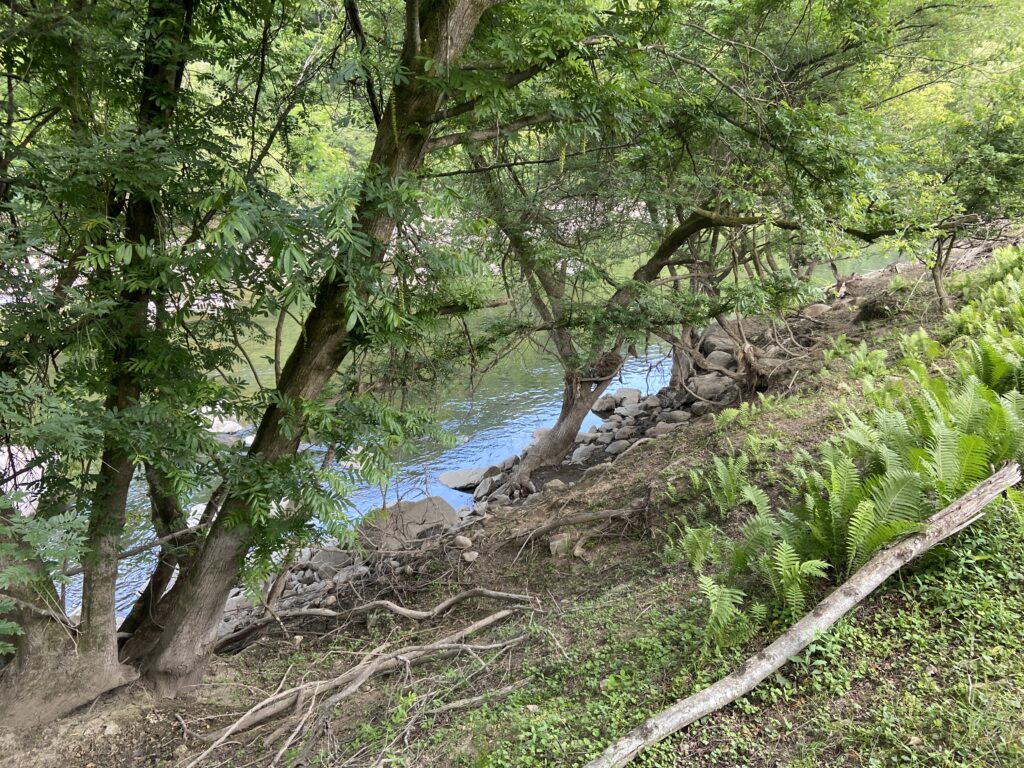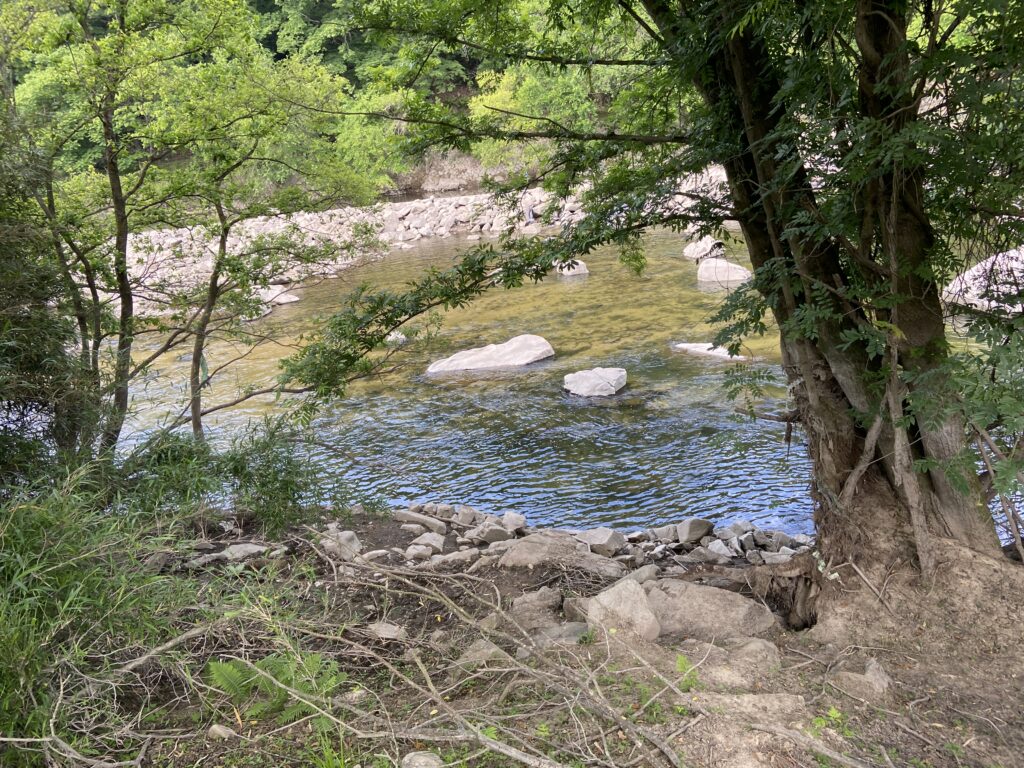 前回と水位が全く違うので、回遊ルートと捕食エリアを把握しながら下流に進んでいく。どうだろう、多分このエリアだけでも20本〜30本くらい居るんじゃないですかね。一番大きいサイズで55くらい。去年の感じと比べると明らかにサイズも数も増えています。