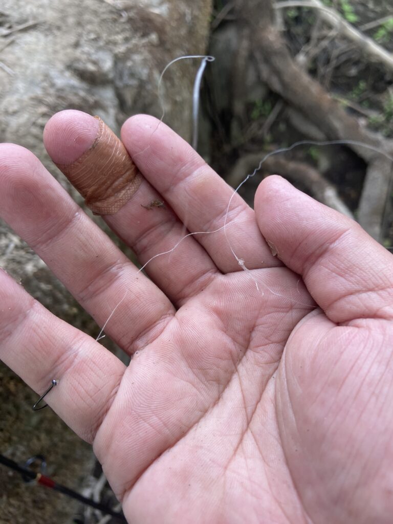 50ないくらいのサイズですが、くっそ引きます。岩に擦られそうになったのでドラグを出すと、その瞬間テンションフリーに・・・(涙)多分針先しか掛かってなかったぽい