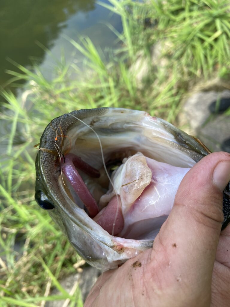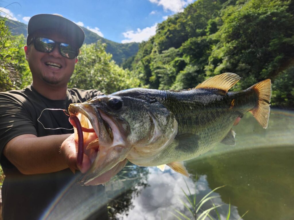 というわけで、流れの緩いシャローに指してきたバスにイールを配膳してあげると迷いなく吸いました。