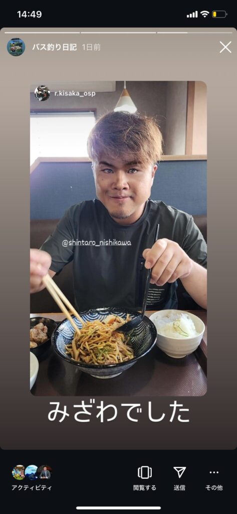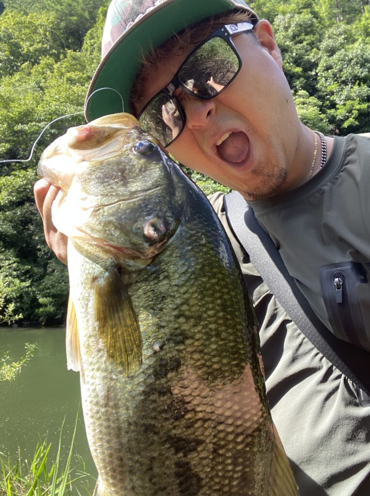 やや下流域で釣りをしていた亮さんは到着後すぐにバスをゲットしてたみたい...マジ??笑