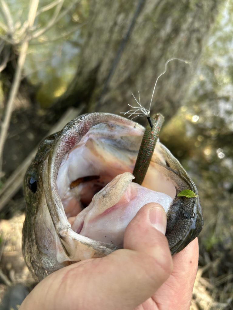と言っても、ジグをストンじゃ食わない季節感なので、選んだのは「ヤマセンコー4inch・5inch」のワッキースタイル。昨年からベイトフィネスとの組み合わせでメスの捕獲率高めのセッティング。