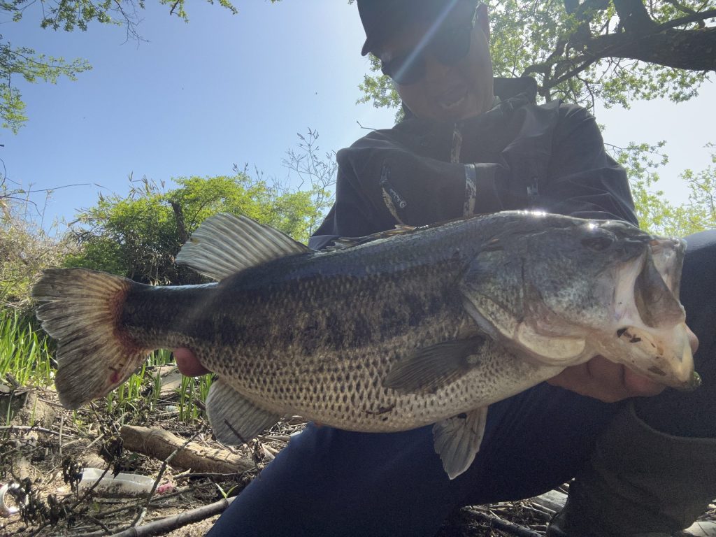 1時間くらいして「もう帰ろうかな」なんて思いましたが、そうそう来れないので少し粘ることに。白竜湖の中でも濁りの影響を受けにくい地形を選択し、カバー撃ちを展開。