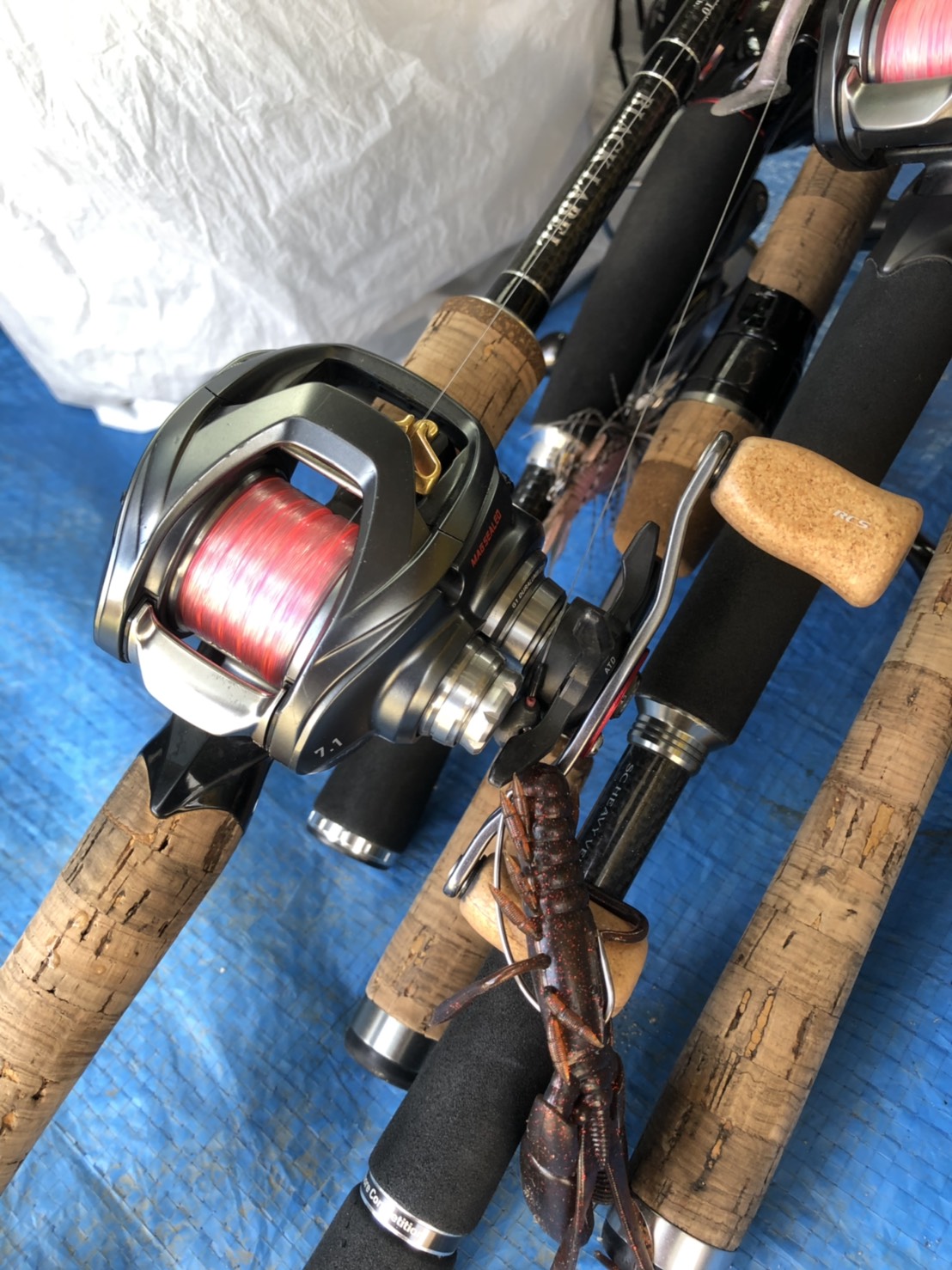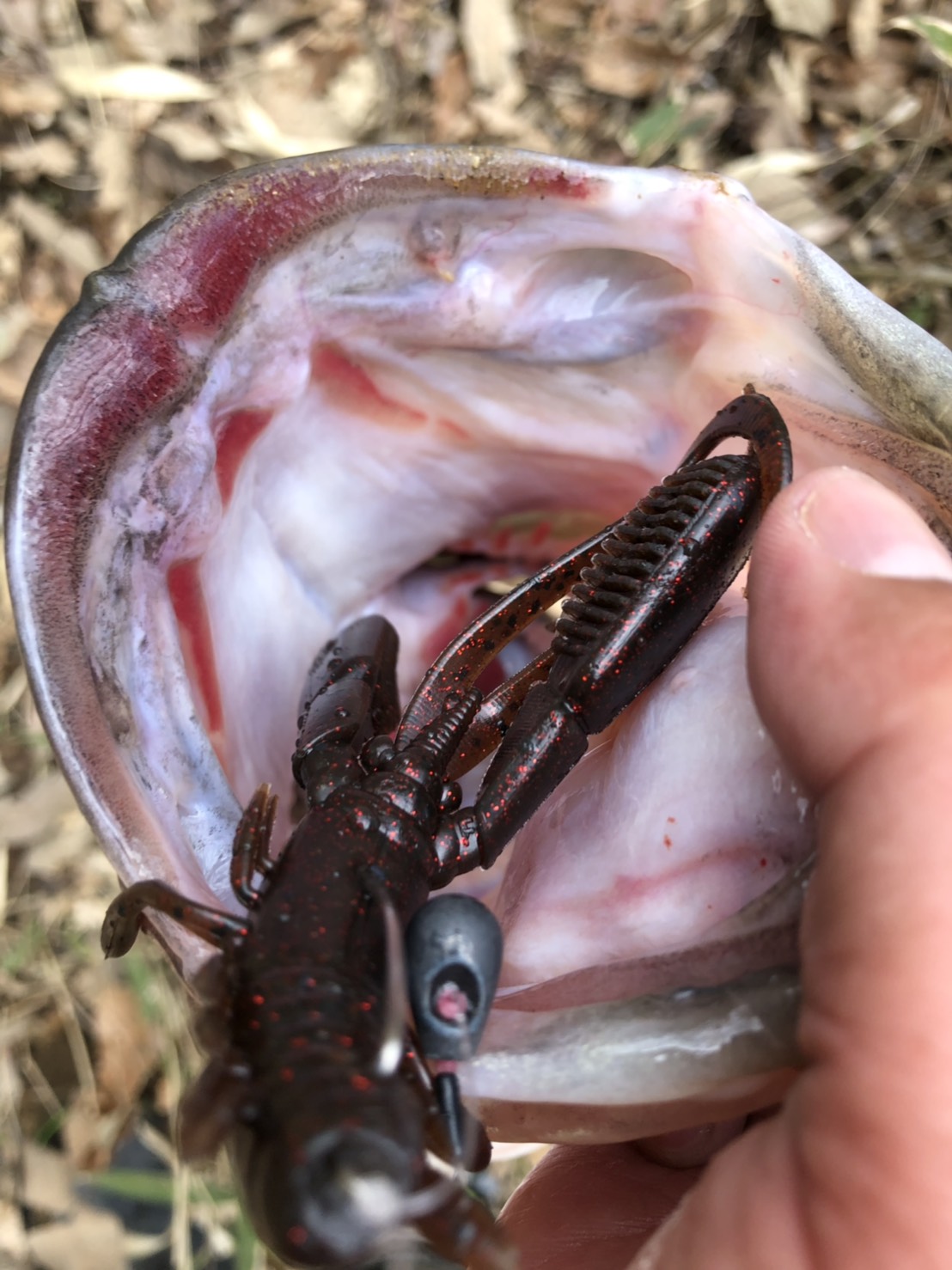 ボトムのちょい上を軽めにスイミングさせ、岩などのストラクチャーに当てて放置。こんな時はラインを張らずにダルダルにして放置が吉。
