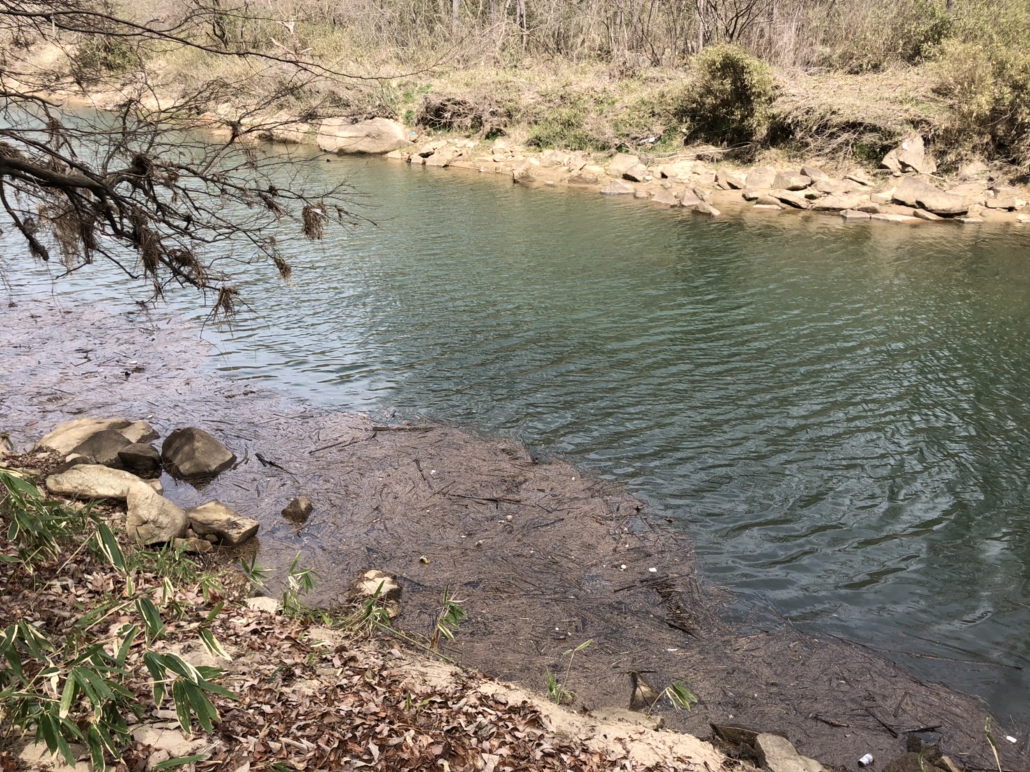 思ったよりも水温が低く、西北西の冷たい風が下流から上流へ。