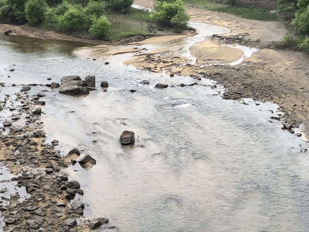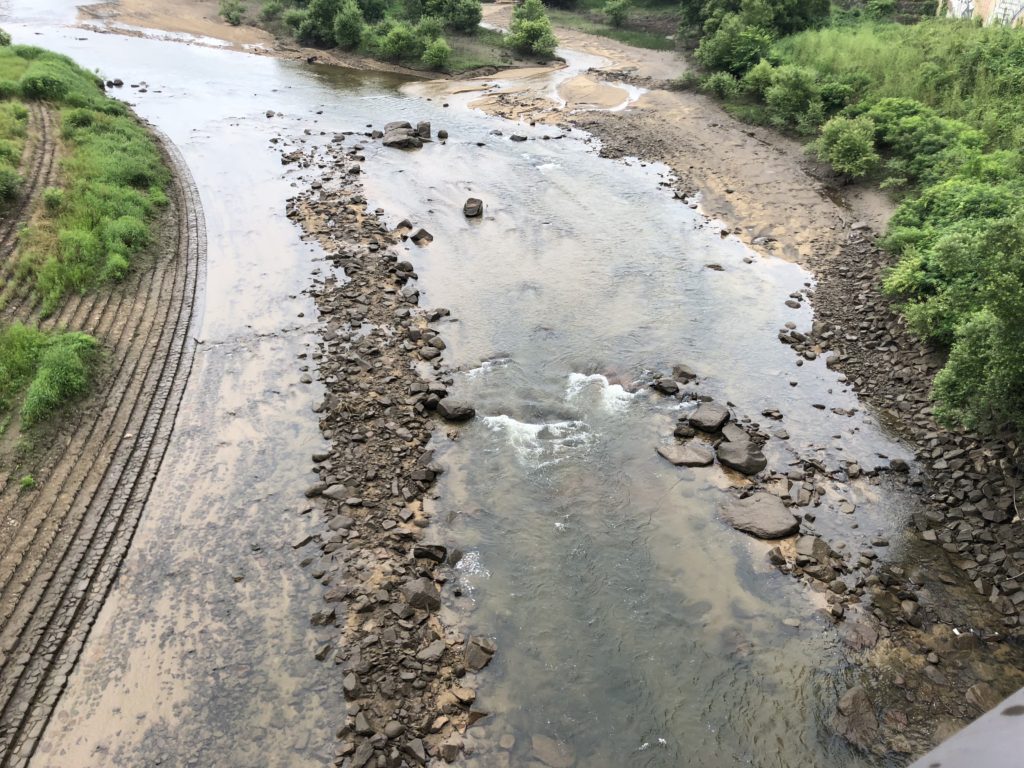 このバスから一気に反応がなくなったため、橋の下の上流までプチ移動。減水の影響で橋の下が流れの落ち込み(浅瀬)になっていた為、バスが溜まっている。