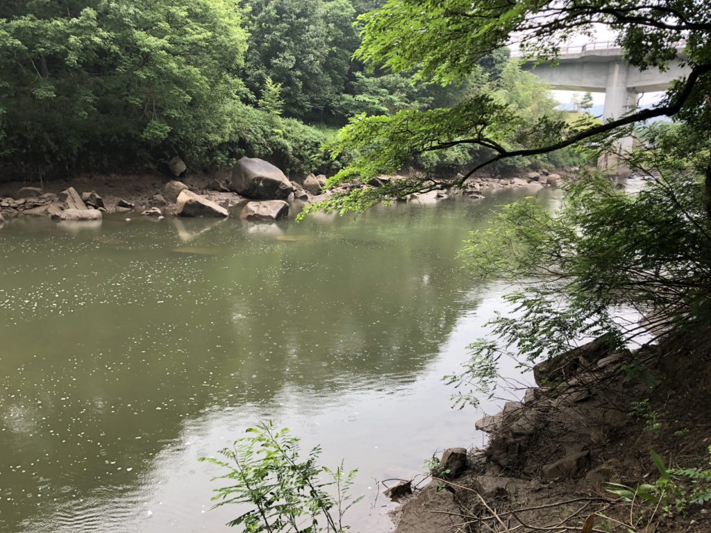 ゴルフ場前の流れ込み。いい感じにチャンネルラインが見える。