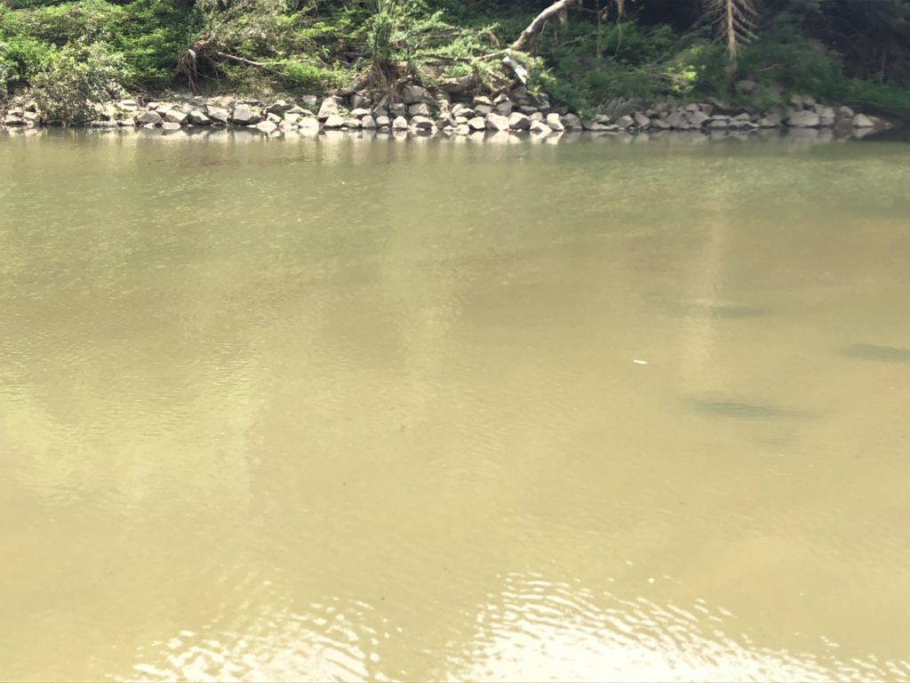 0.9グラムのネイルシンカーを取り、なるべく水面直下をキープし、下から食い上げさせるイメージで目に見える変化を流していく。写真でいう色の変わり目(ブレイクライン)を狙う