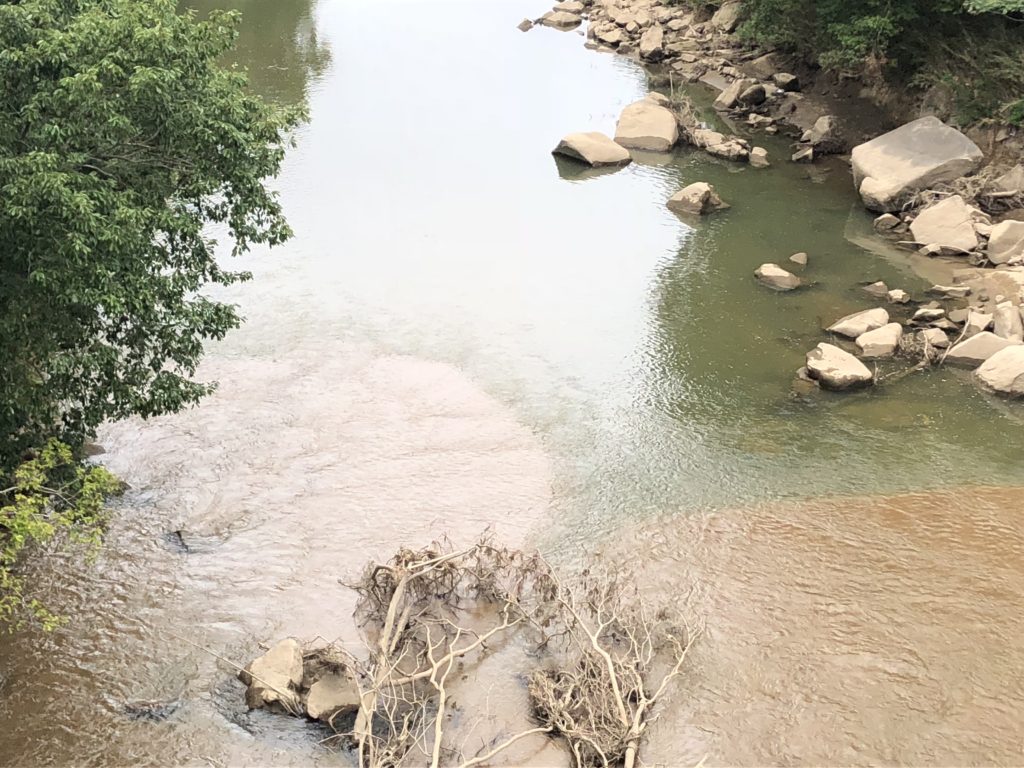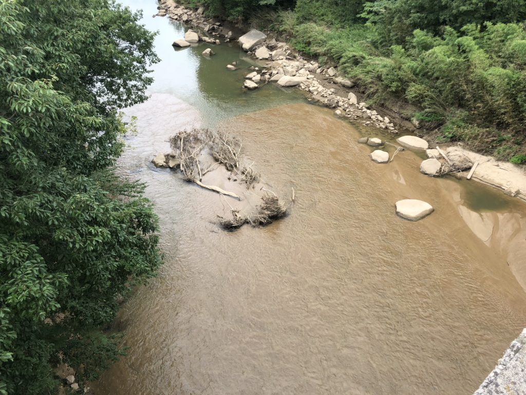 前回の釣行よりも減水していて地形がはっきりとわかる状態。昇竜橋の下流側の地形。