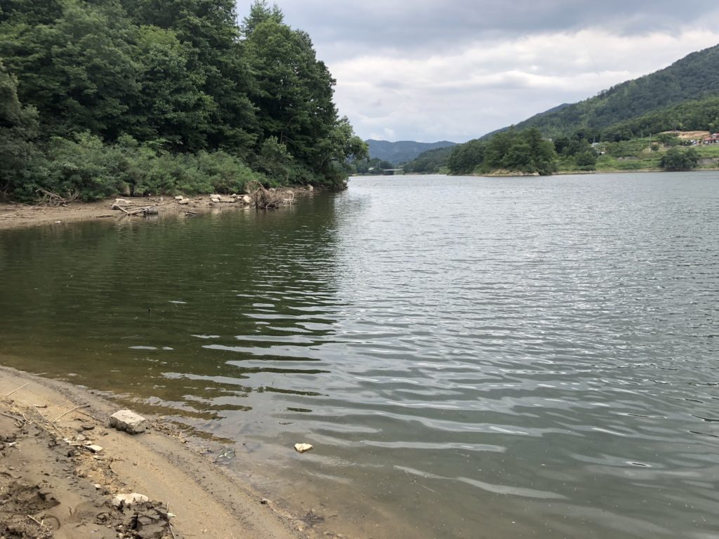 昨日のことは忘れて、楽しく釣りをしよう!ということで、今日は朝から白竜湖へ。昨日、魚影の濃かった上流から釣りスタート。