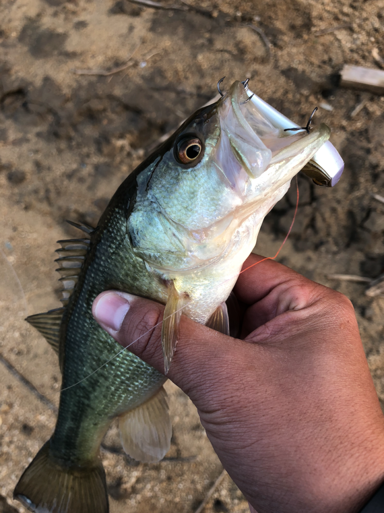 やや水深があるスポットにはバスも溜まっているようで、自分はジャスターフィッシュのネイルリグとブーストのリフト&フォールで子バスを3本追加。