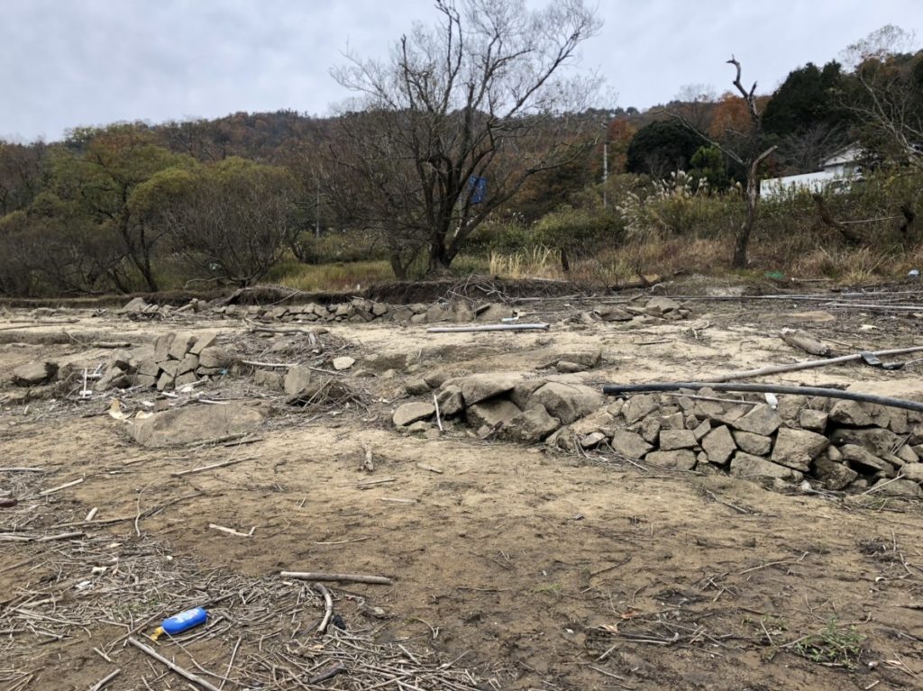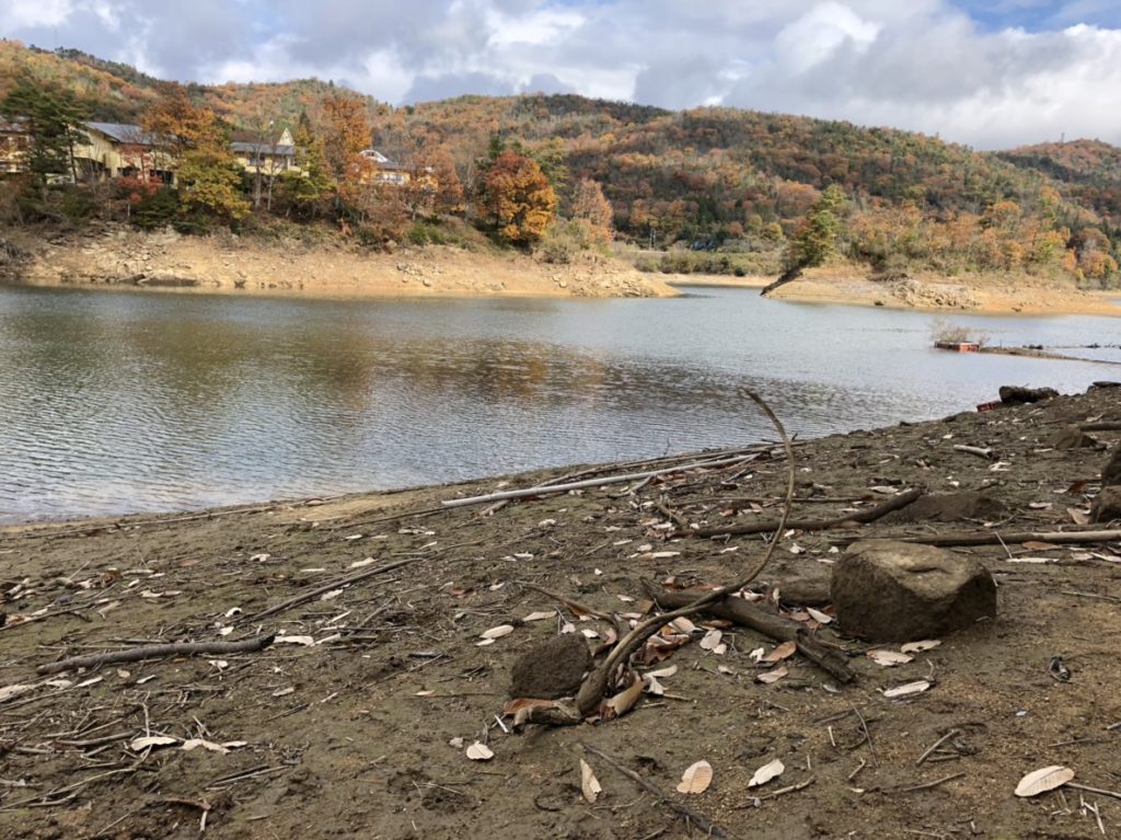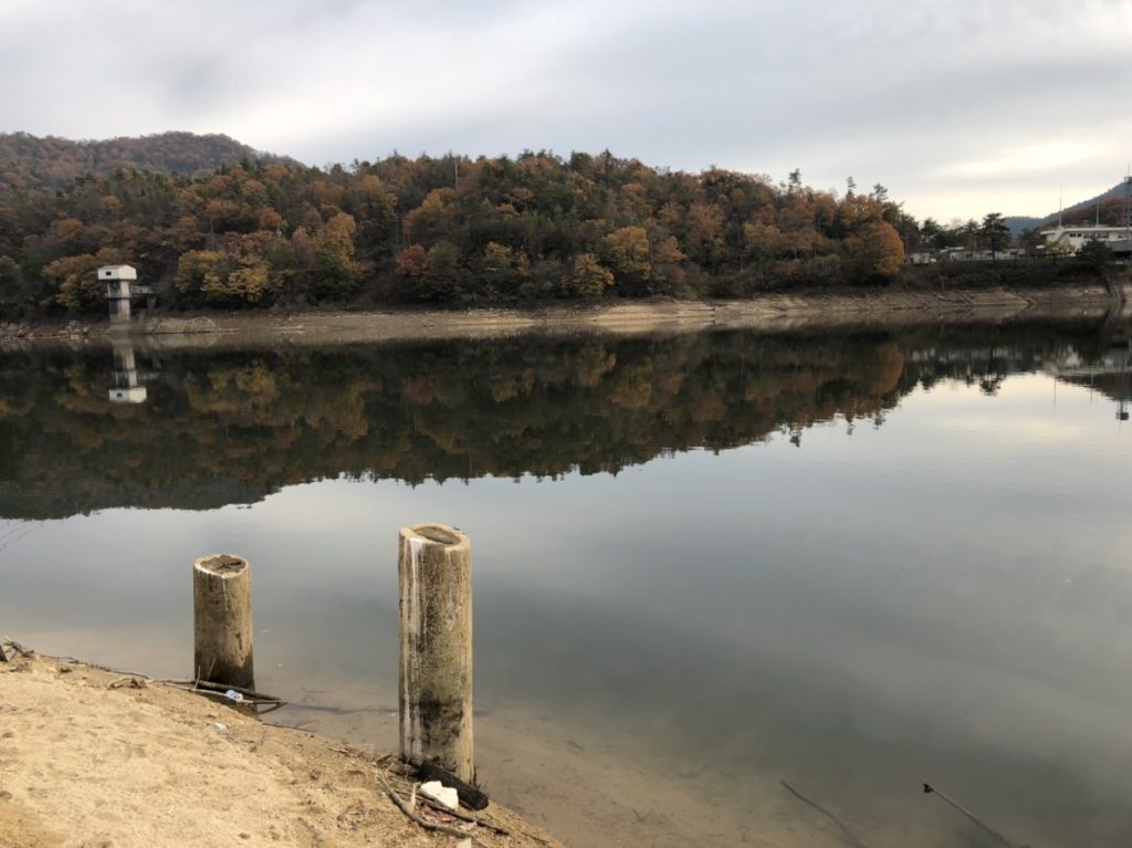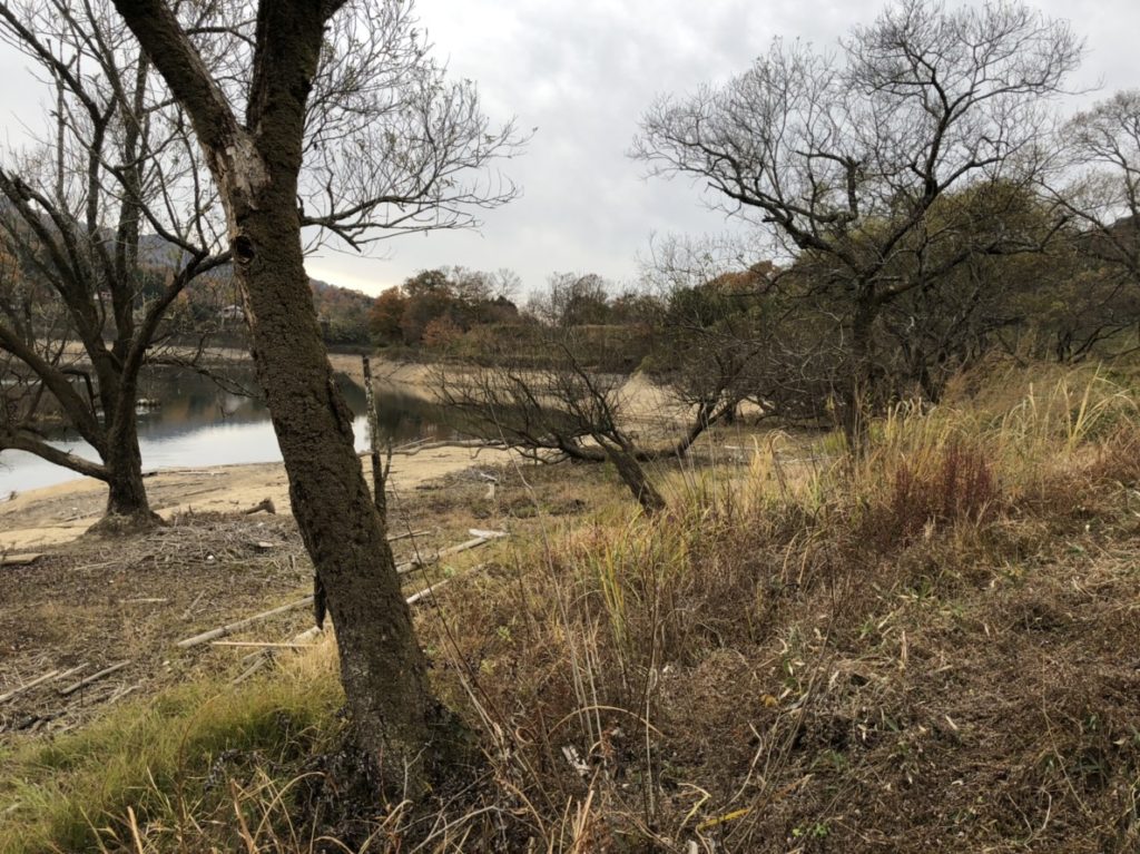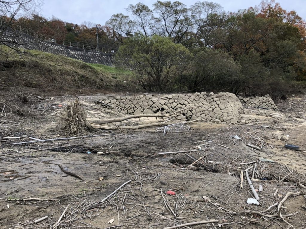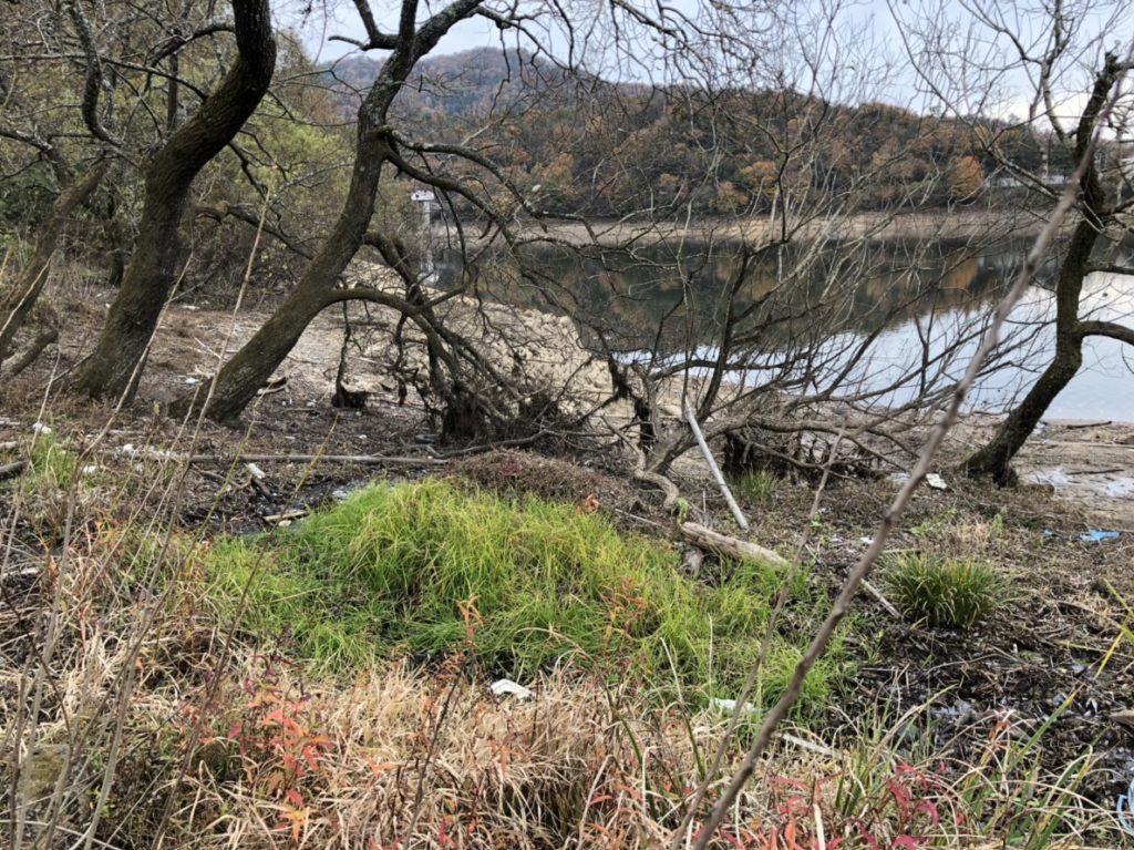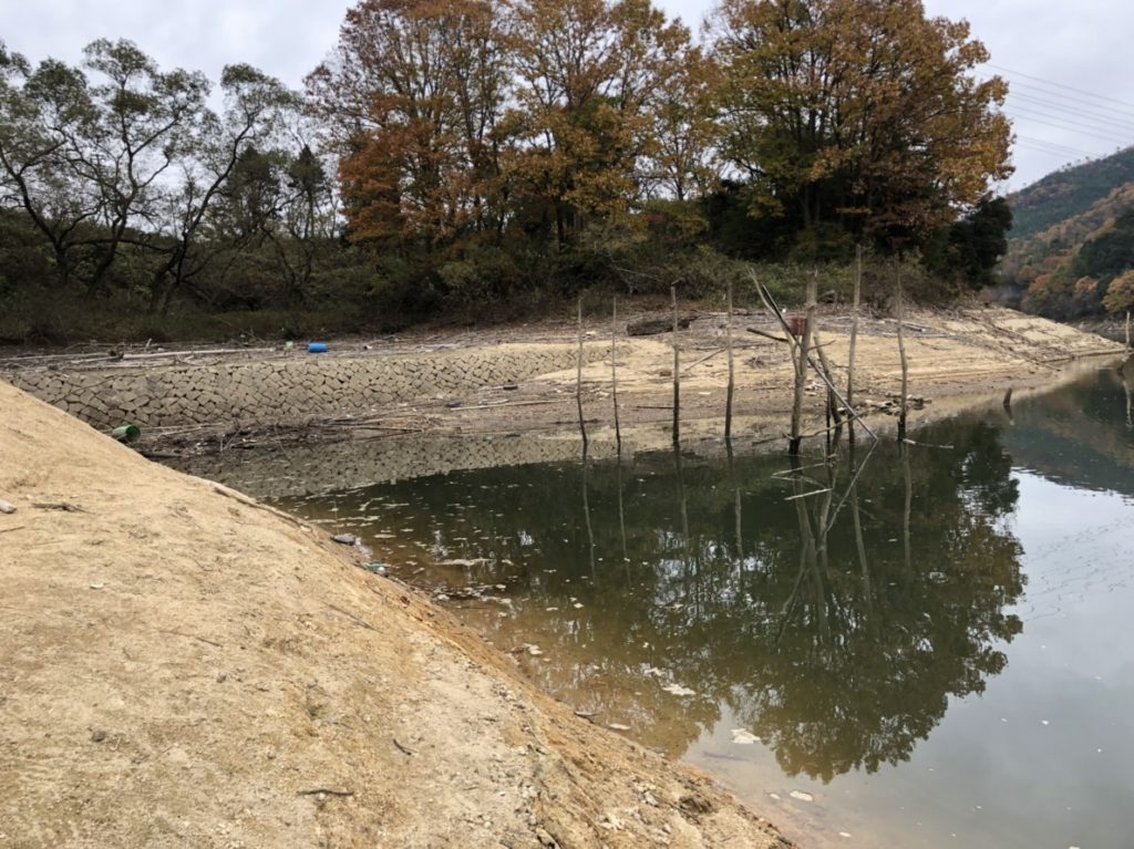 貯水率が落ちて水中のストラクチャー露出。