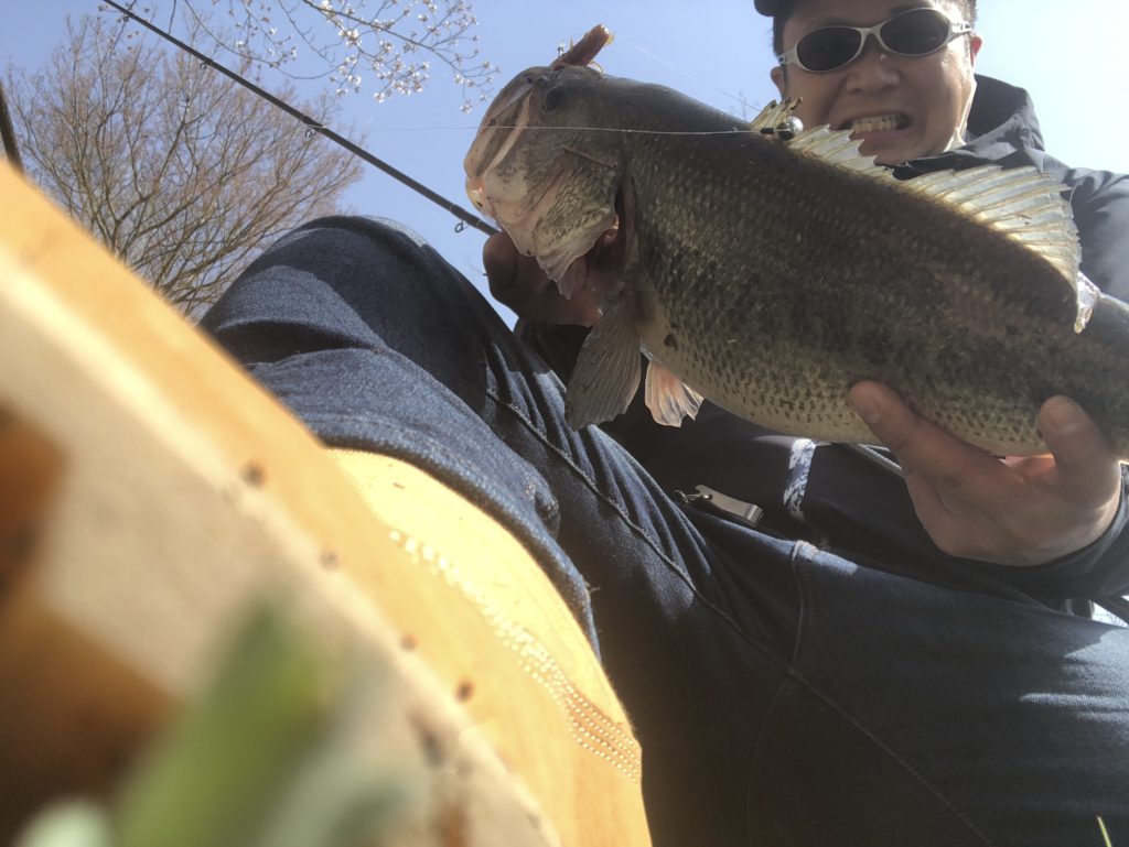 その後、上流をチェックしたもののバスの影は見えず、冬場から安定した釣果を出しているリゾートホテル下をスピナベ、クランクで流す。
