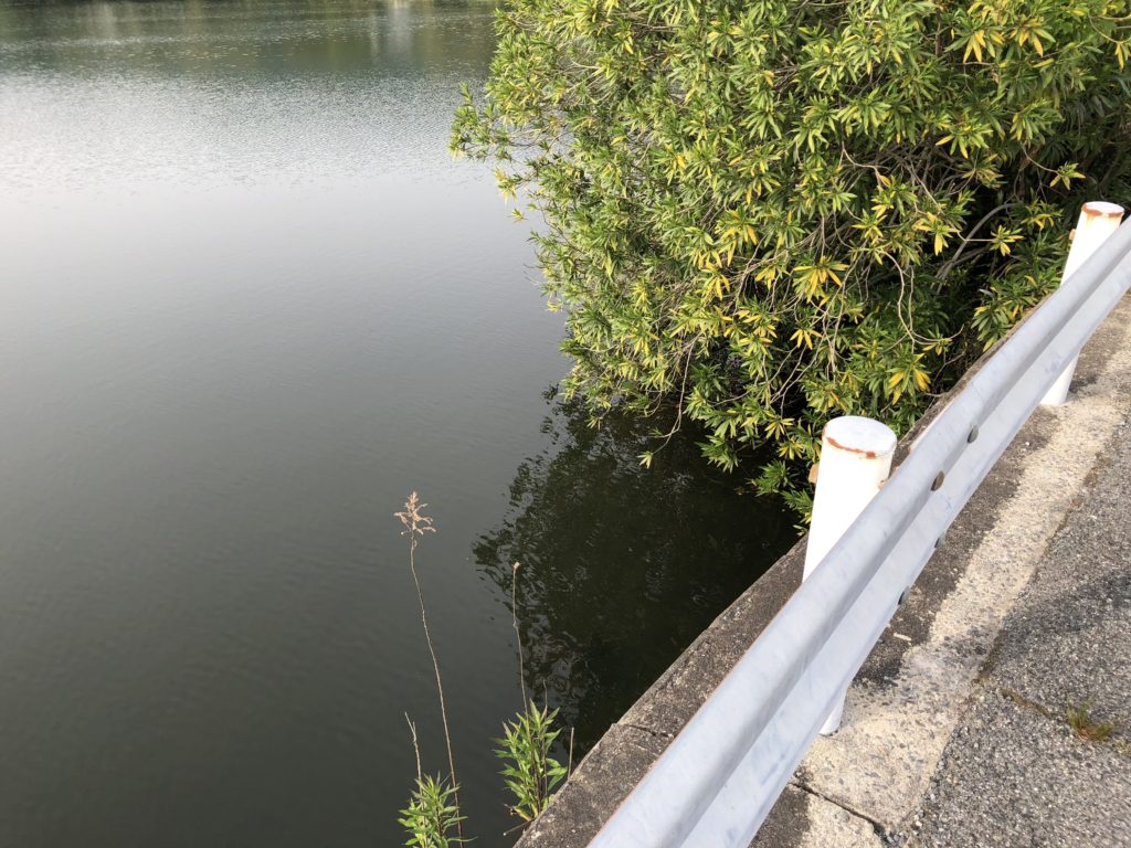 翌日は浮いているバスの姿はなく、護岸側には回遊する2本しか見えず、リリーパットエリアでロクマルが水面近くをふらっと泳いでいるのを発見しただけでノーフィッシュ!