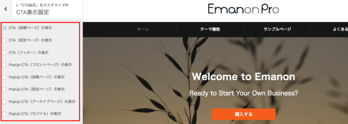 それもそのはずです。このこのEmanon Proには、複数のCTAの仕掛けがあります。CTAとは「Call To Action(コールトゥーアクション)」の略語です。